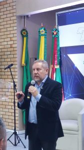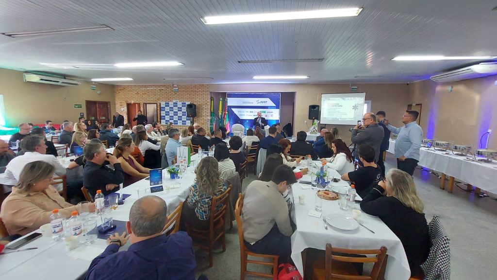 O prefeito Heliomar Franco foi o palestrante da primeira edição de 2026 da reunião-almoço Momento do Empreendedor promovida pela Associação Comercial, Industrial, de Serviços e Tecnologia de São Leopoldo (ACIST-SL). O evento, realizado no dia 1 de abril (terça-feira) na sede da entidade, contou com autoridades, empresários, imprensa e convidados. O objetivo da agenda, segundo o presidente da entidade, Filipe Schuck, é informar a classe empresarial dos projetos que o poder público vem realizando, principalmente os que têm relação com o setor produtivo.