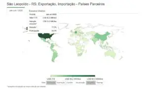 As exportações de peças, ferramentas pneumáticas, armas e couros renderam para São Leopoldo divisas na ordem de US$ 469 milhões em 2024. Deste total, os Estados Unidos foi responsável por 38,5%, isto é, US$ 181 milhões. Já de janeiro a junho deste ano, o município registrou US$ 257,8 milhões em divisas, sendo que as vendas para os norte-americanos equivaleram a 35%. Caso se confirme a elevação da tarifa de importação para 50% – a partir de 1 de agosto – estes resultados poderão sofrer um forte revés, colocando em risco a economia local.